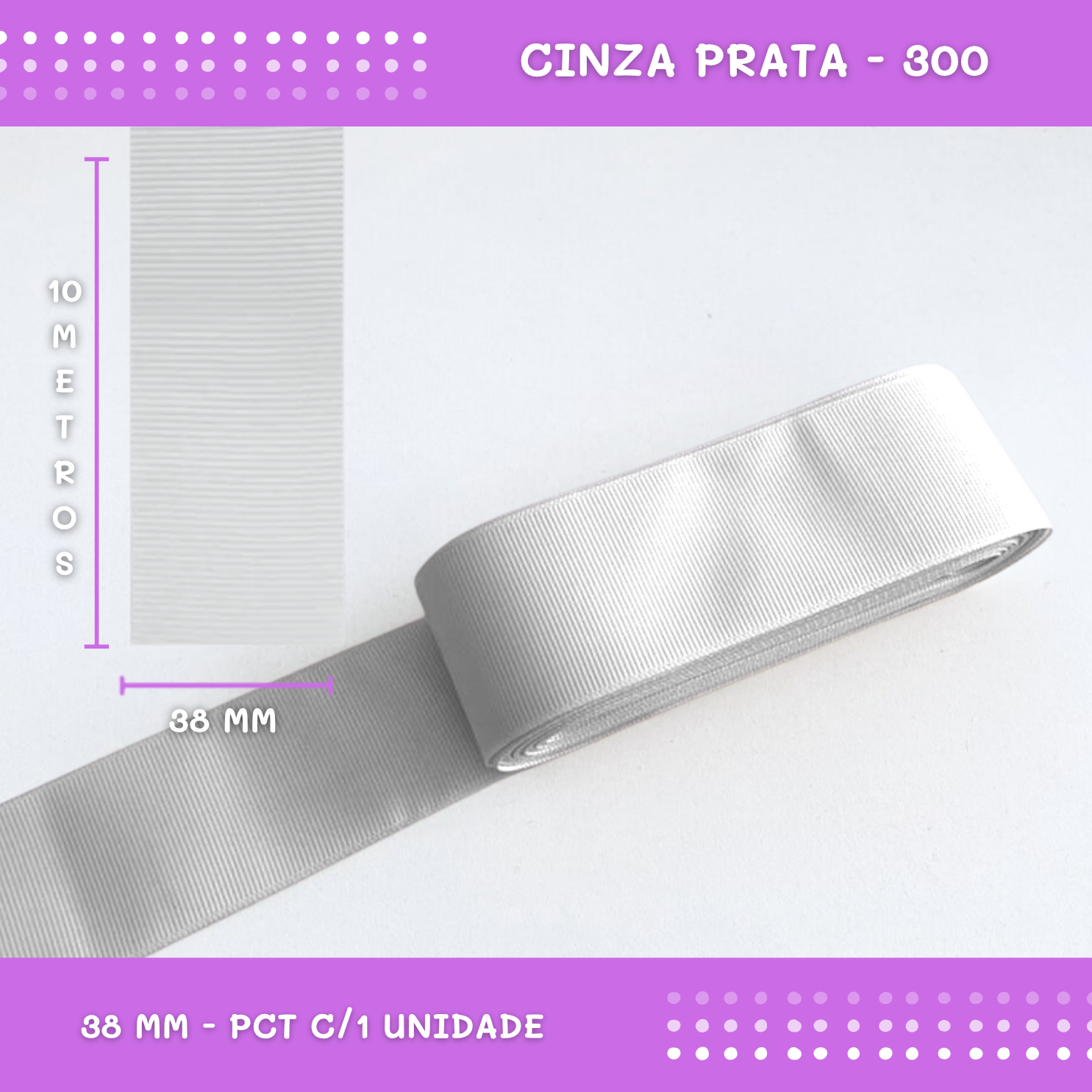 Fita de Gorgurão P/Laços - Nº9 (38mm) - COR:CINZA-PRATA-300