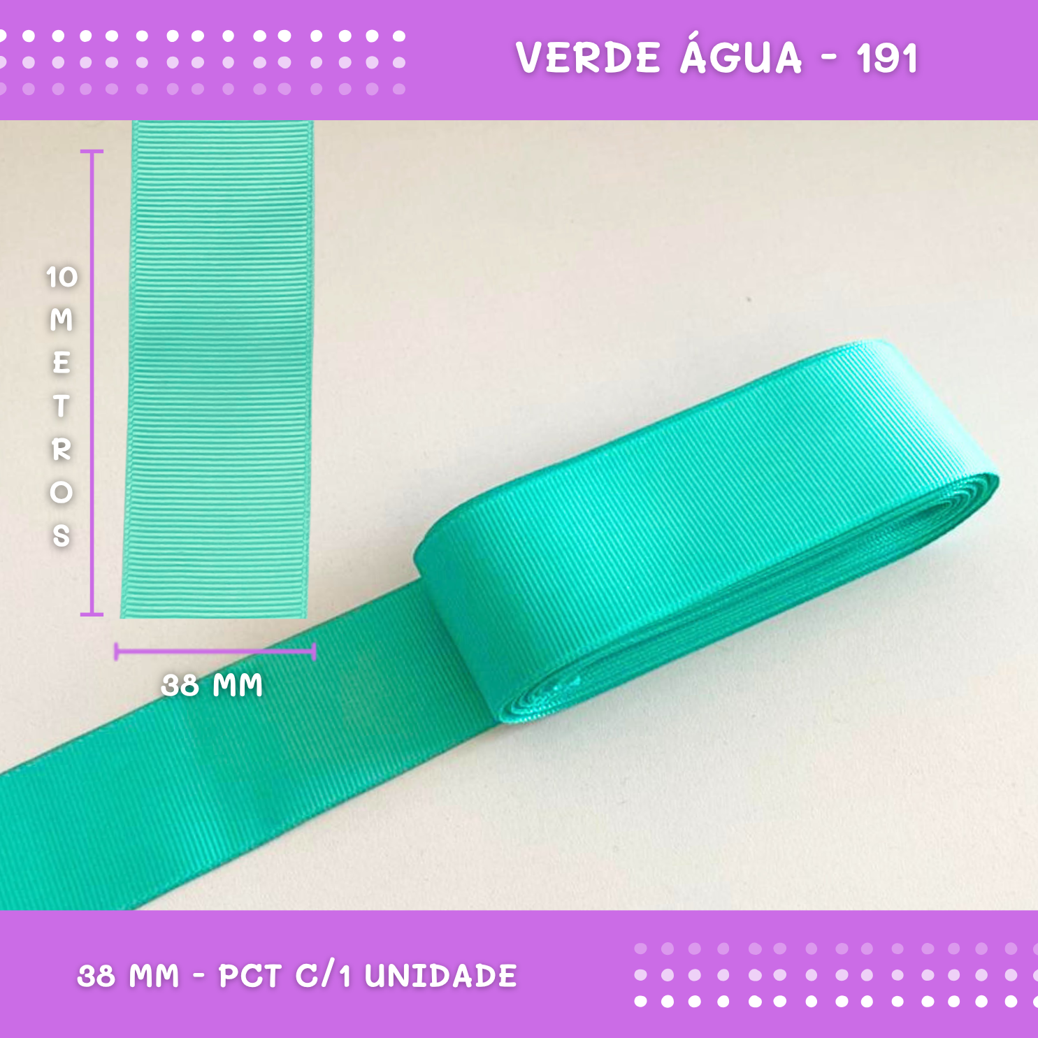 Fita de Gorgurão P/Laços - Nº9 (38mm) - COR:VERDE-AGUA-191