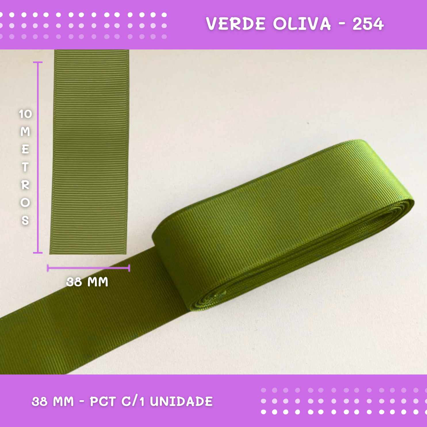 Fita de Gorgurão P/Laços - Nº9 (38mm) - COR:VERDE-OLIVA-254