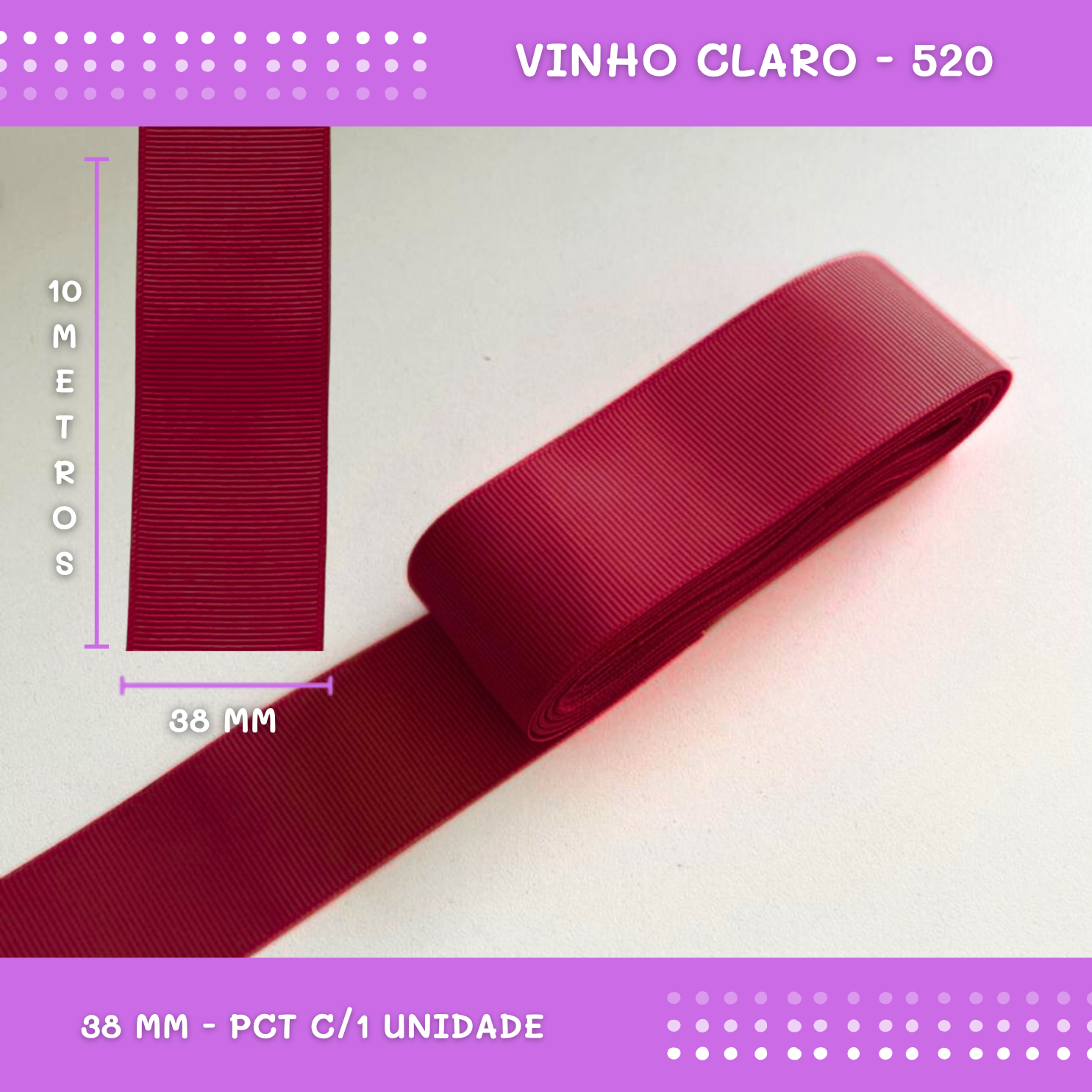 Fita de Gorgurão P/Laços - Nº9 (38mm) - COR:VINHO-CLARO-520