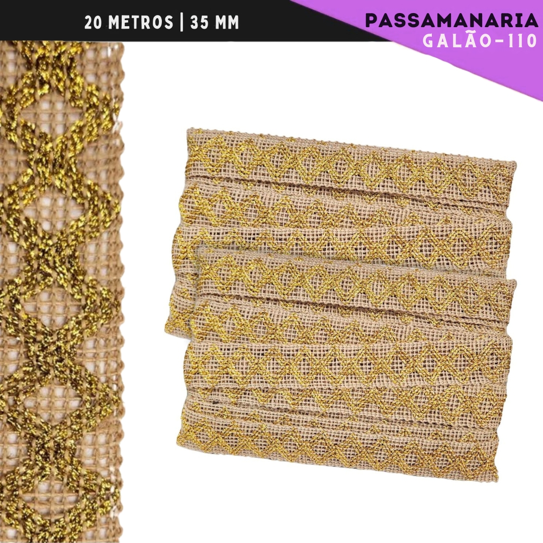 Esta linda Passamanaria com abacamento de Juta, que te permite aplicar em acabamentos de vestuário, decoração, artesanato, caimento para cortinas, lençois, toalhas e forros de mesa. Abuse da sua criatividade para criar peças incríveis com nosso Galão.