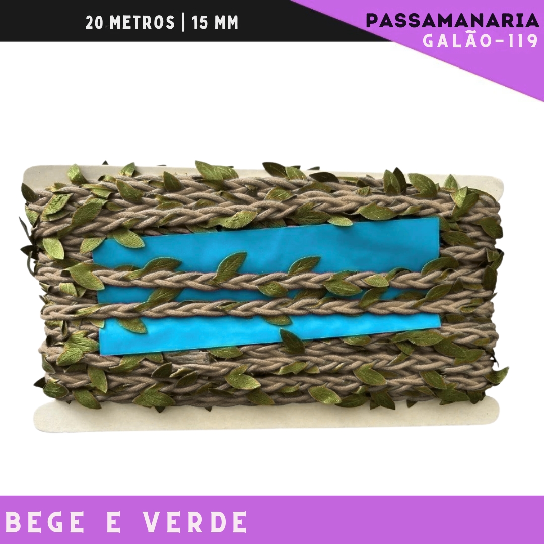 Fita De Passamanaria Corda Trançada C/Folhas Galao-119 - Rolo C/20 Mts Cor:Bege/Verde-Oliva-267/254