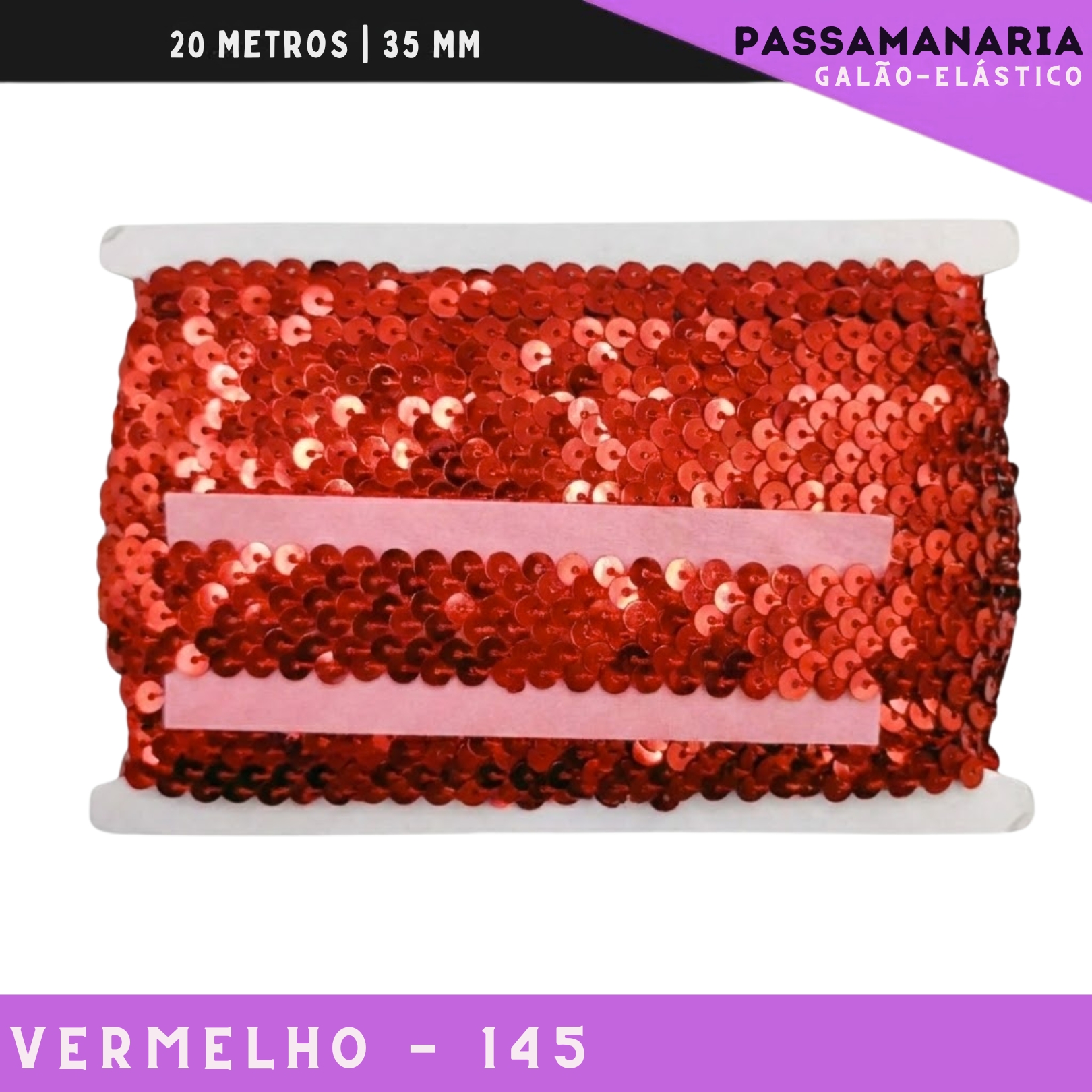 Fita Galao Elastico De Paete Lantejoula - Tam: 35mm - Rolo C/13.7 Mts Cor:Vermelho-145