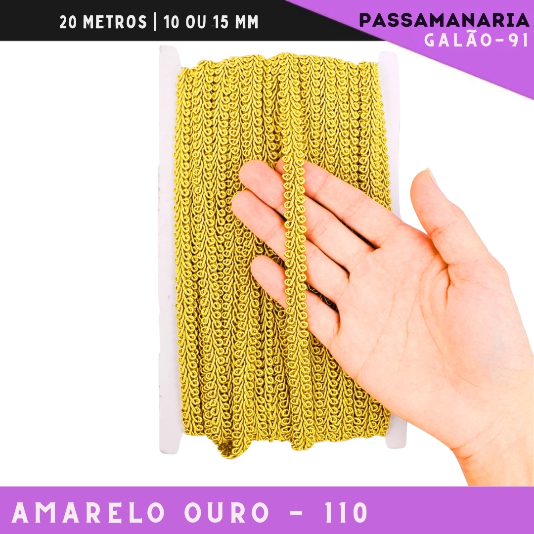 Fita Galão Passamanaria 10mm - Galao-91 - Rolo C/20 Mts Cor:Amarelo-Ouro-110