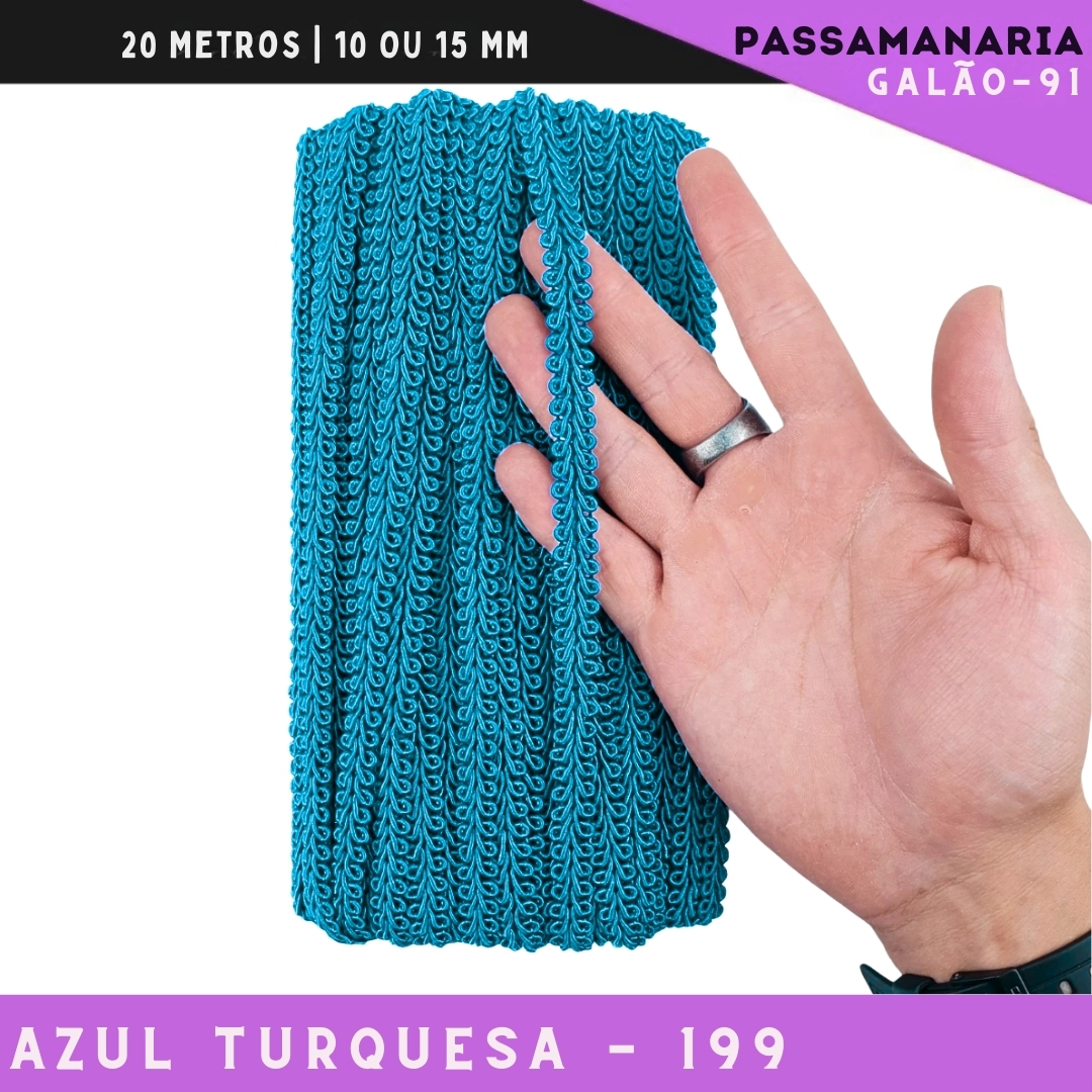 Fita Galão Passamanaria 10mm - Galao-91 - Rolo C/20 Mts Cor:Azul-Turquesa-199