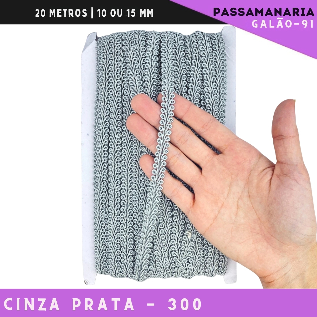 Fita Galão Passamanaria 10mm - Galao-91 - Rolo C/20 Mts Cor:Cinza-Prata-300
