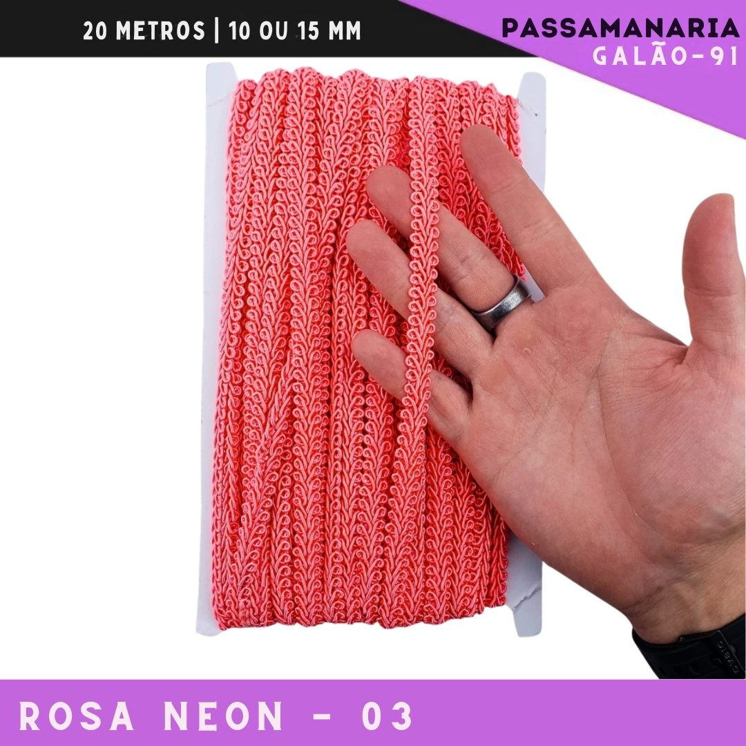 Fita Galão Passamanaria 10mm - Galao-91 - Rolo C/20 Mts Cor:Rosa-Neon-03