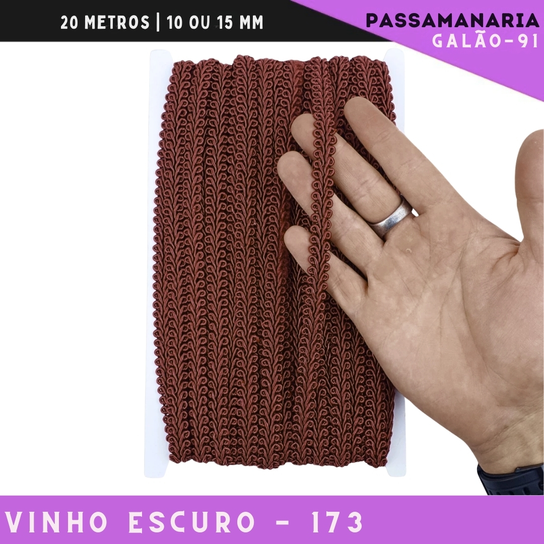 Fita Galão Passamanaria 10mm - Galao-91 - Rolo C/20 Mts Cor:Vinho-173