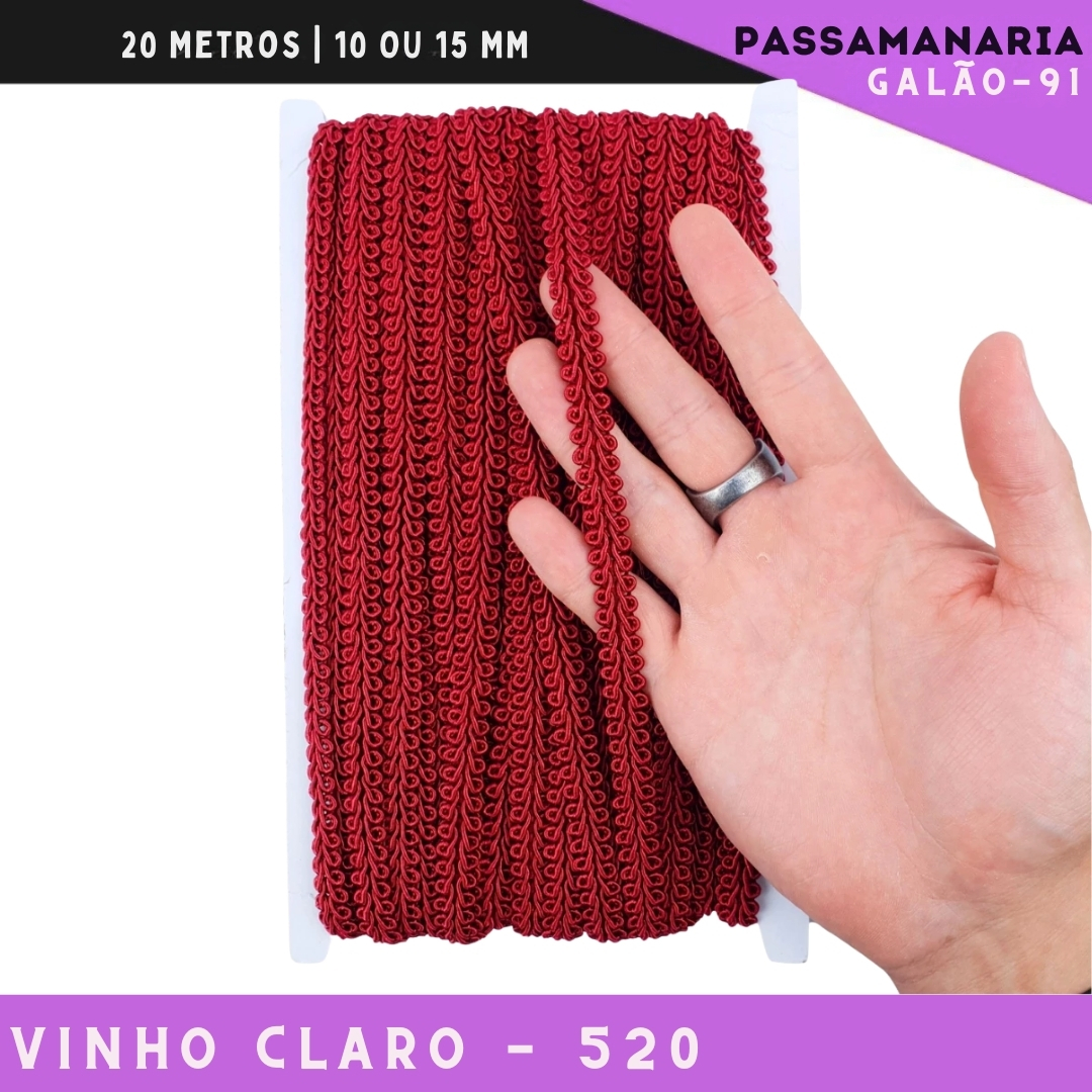 Fita Galão Passamanaria 10mm - Galao-91 - Rolo C/20 Mts Cor:Vinho-Claro-520