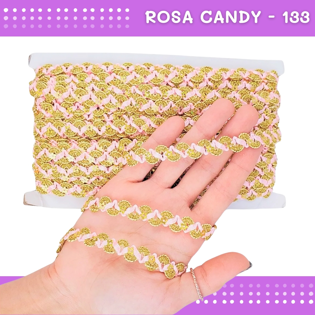 Fita Galão Passamanaria - 12mm - Ref:Galao-49 - Rolo C/20 Mts Cor:Rosa-Candy-133