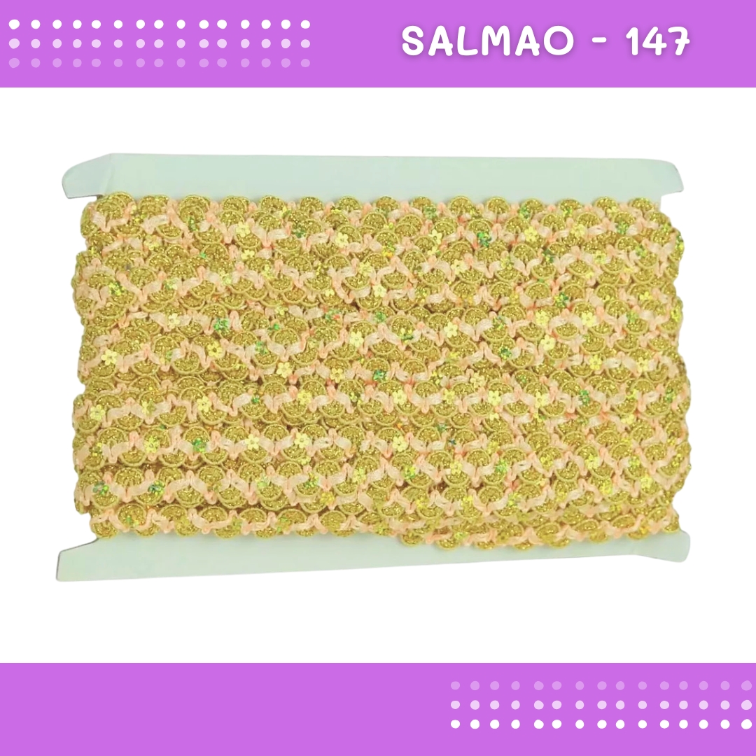 Fita Galão Passamanaria - 12mm - Ref:Galao-49 - Rolo C/20 Mts Cor:Salmao-147
