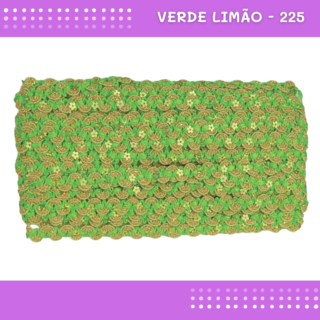 Fita Galão Passamanaria - 12mm - Ref:Galao-49 - Rolo C/20 Mts Cor:Verde-Limao-225
