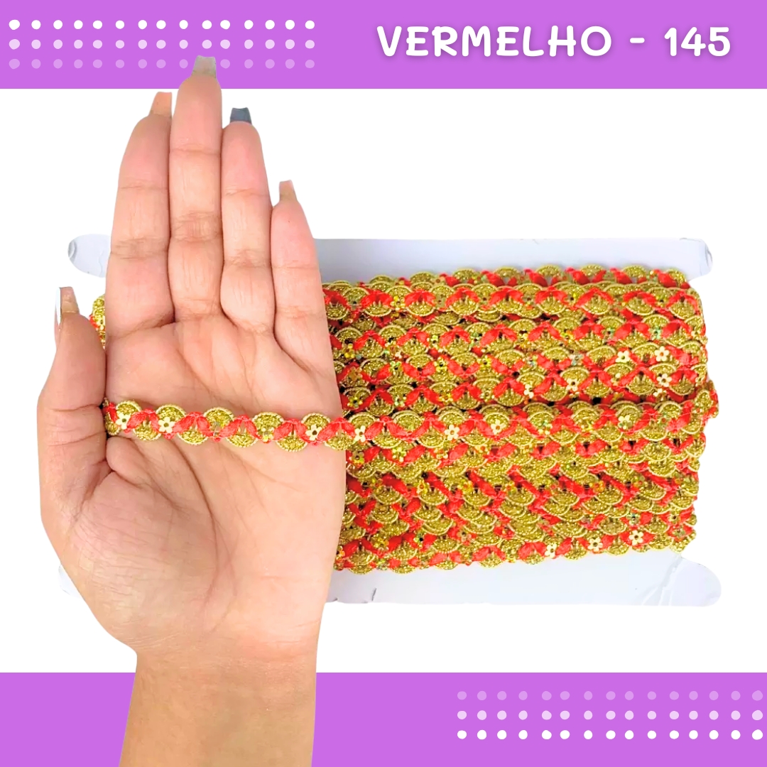Fita Galão Passamanaria - 12mm - Ref:Galao-49 - Rolo C/20 Mts Cor:Vermelho-145
