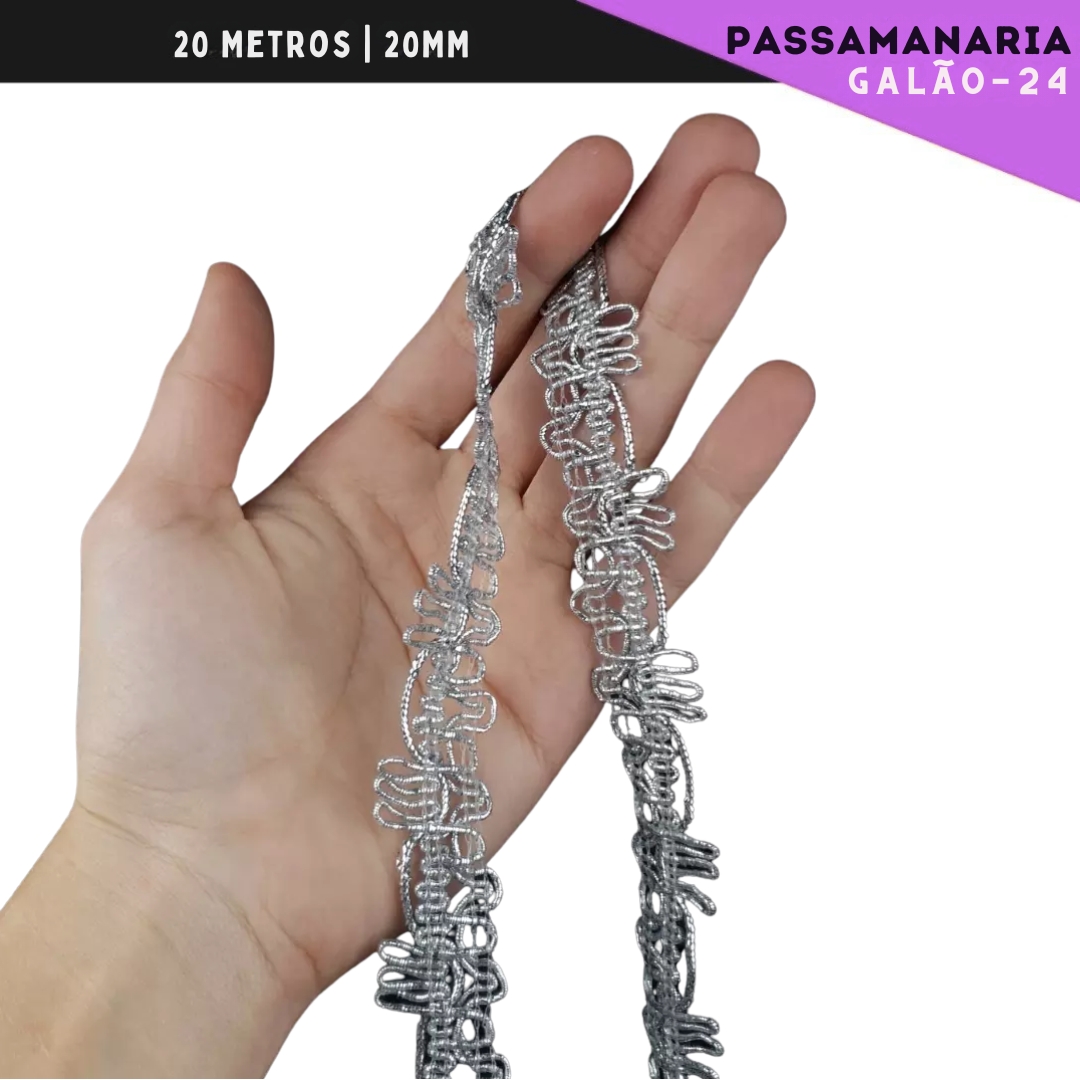 Fita Galão Passamanaria - 20mm - Ref:Galao-24 - Rolo C/20 Mts COR:PRATA