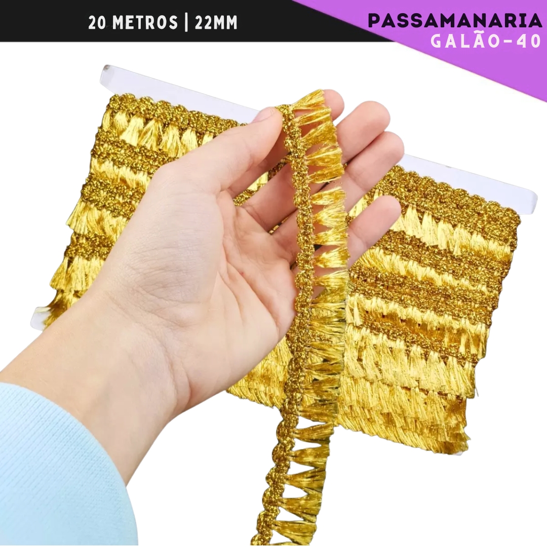 Fita Galão Passamanaria - 22mm - Ref:Galao-40 - Rolo C/20 Mts