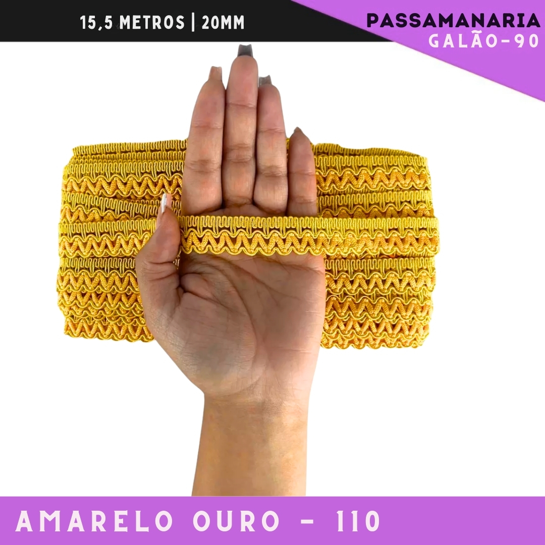 Fita Galão Passamanaria Galao-90 - 20mm - Rolo C/15,5 Mts Cor:Amarelo-Ouro-110