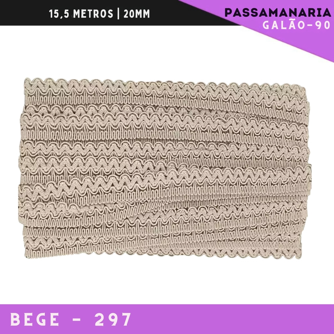 Fita Galão Passamanaria Galao-90 - 20mm - Rolo C/15,5 Mts Cor:Bege-297