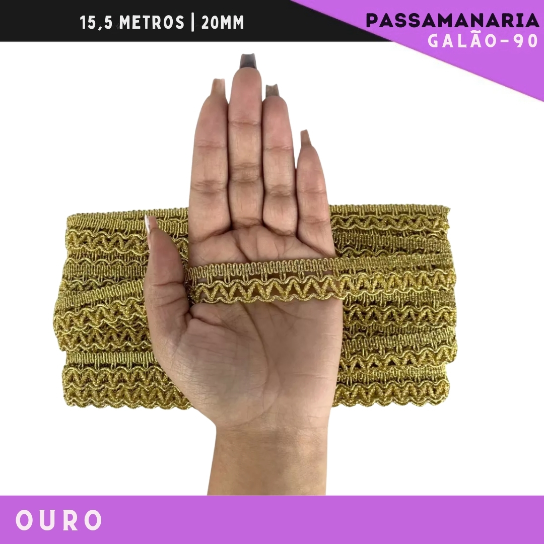 Fita Galão Passamanaria Galao-90 - 20mm - Rolo C/15,5 Mts Cor:Ouro