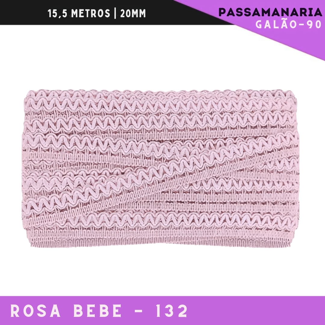 Fita Galão Passamanaria Galao-90 - 20mm - Rolo C/15,5 Mts Cor:Rosa-Bebe-132