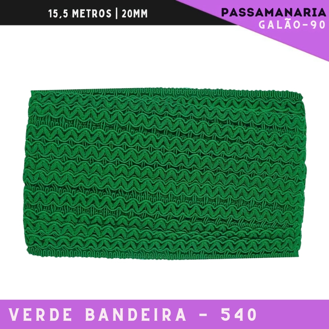 Fita Galão Passamanaria Galao-90 - 20mm - Rolo C/15,5 Mts Cor:Verde-Bandeira-540