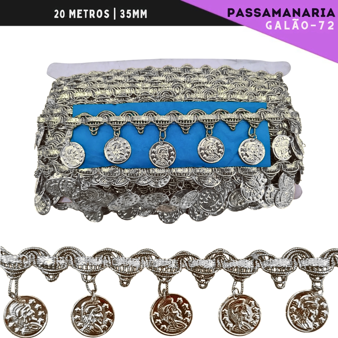 Fita Galão Passamanaria Moeda Cigana 35mm - Galao-72 - Rolo C/20 Mts