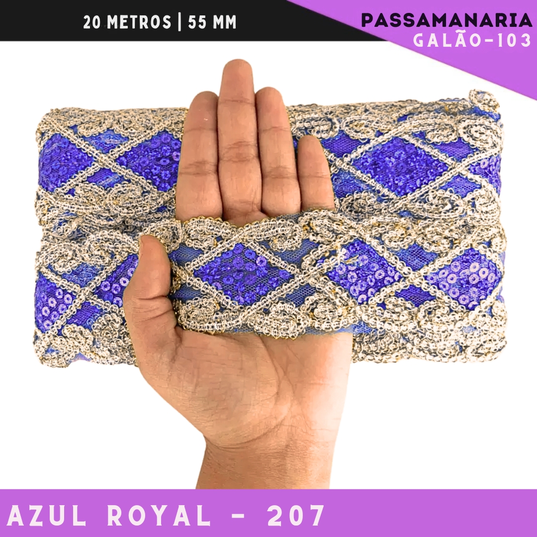 Fita Galão Passamanaria Ref:Galao-103 -55mm - Rolo C/20 Mts Cor:Azul-Royal-207