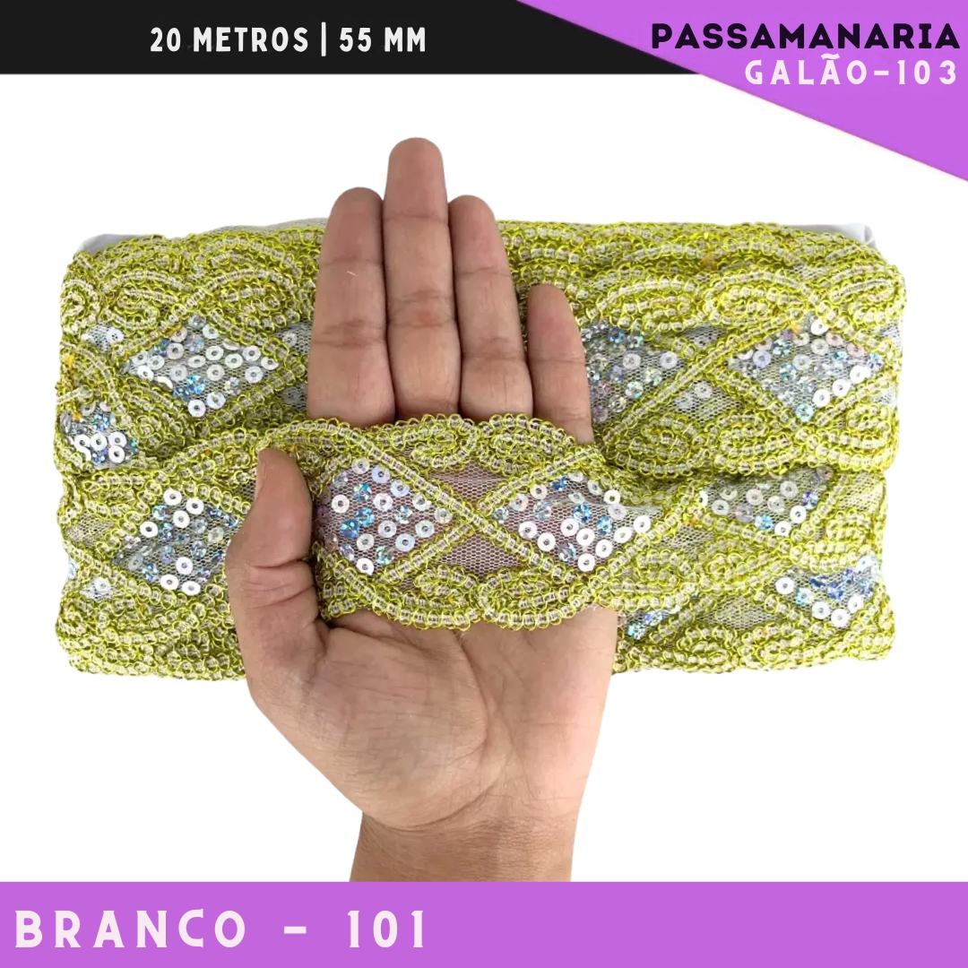 Fita Galão Passamanaria Ref:Galao-103 -55mm - Rolo C/20 Mts Cor:Branco-101