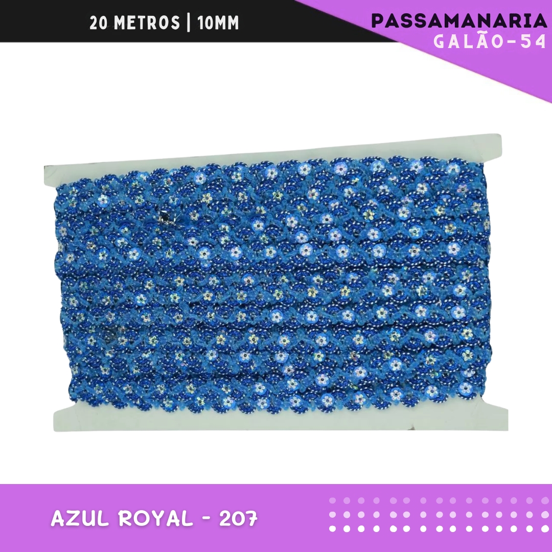 Fita Galão Passamanaria Ref:Galao-54-10mm - Rolo C/20 Mts Cor:Azul-Royal-207