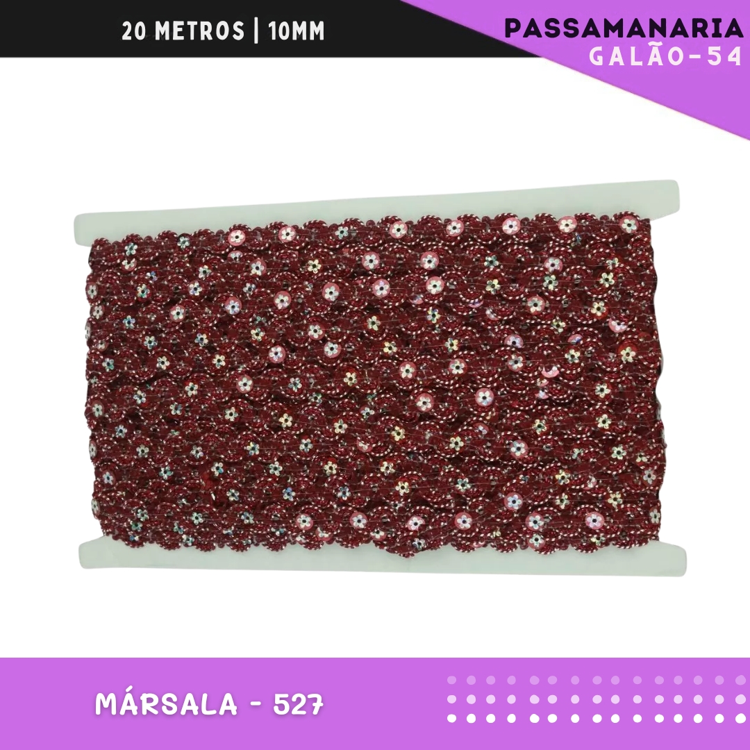 Fita Galão Passamanaria Ref:Galao-54-10mm - Rolo C/20 Mts Cor:Marsala-527