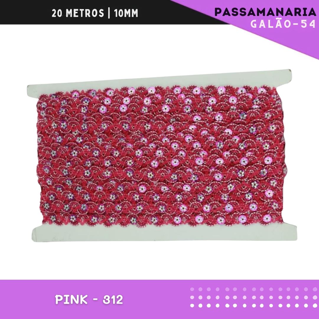 Fita Galão Passamanaria Ref:Galao-54-10mm - Rolo C/20 Mts Cor:Pink-312