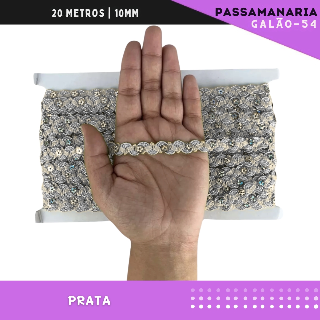 Fita Galão Passamanaria Ref:Galao-54-10mm - Rolo C/20 Mts Cor:Prata
