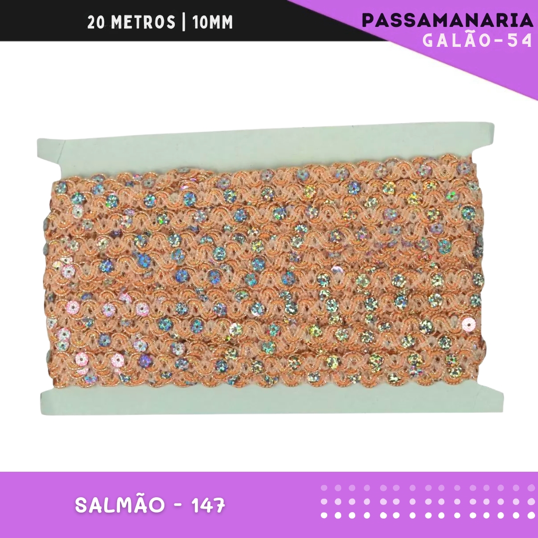 Fita Galão Passamanaria Ref:Galao-54-10mm - Rolo C/20 Mts Cor:Salmao-147