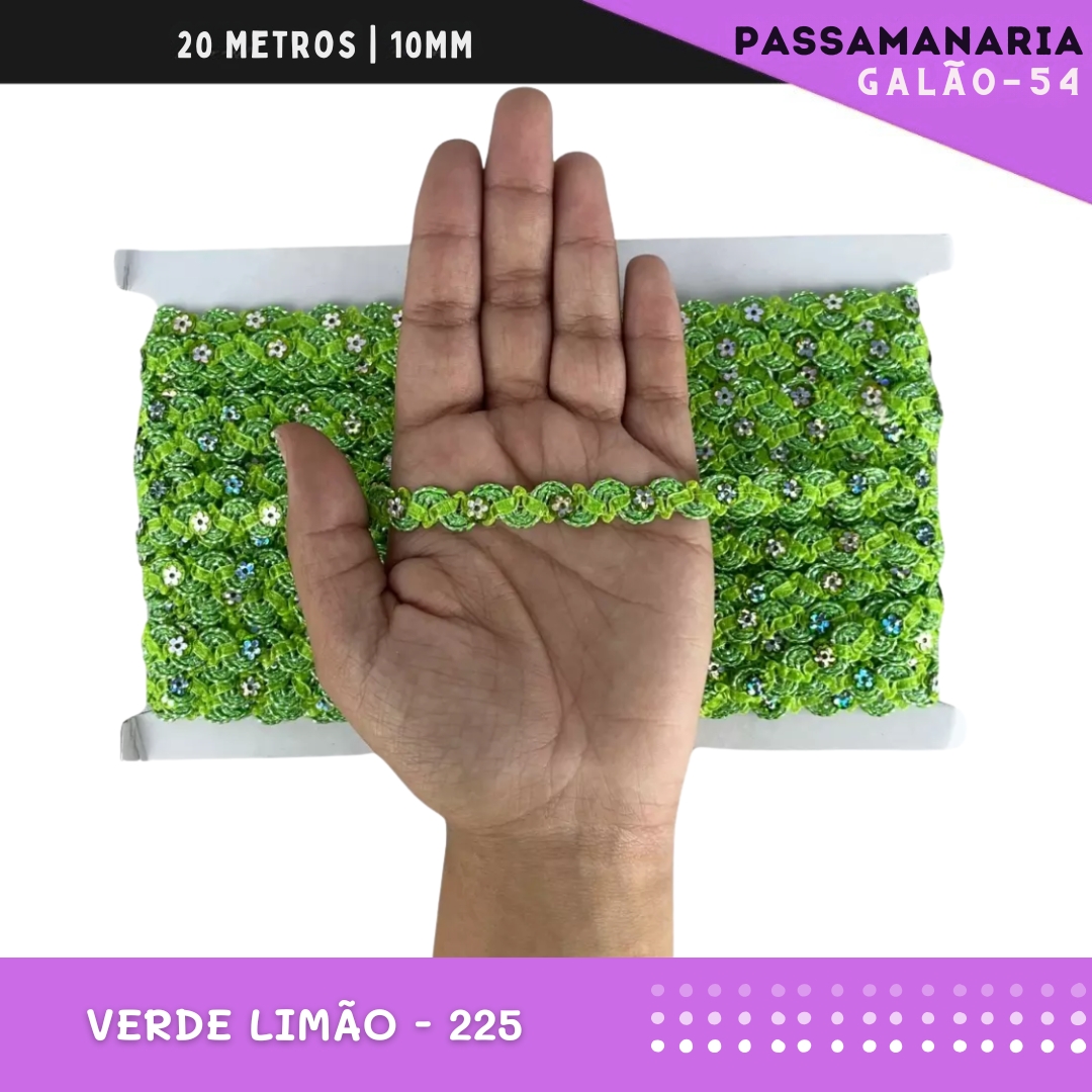 Fita Galão Passamanaria Ref:Galao-54-10mm - Rolo C/20 Mts Cor:Verde-Limao-225