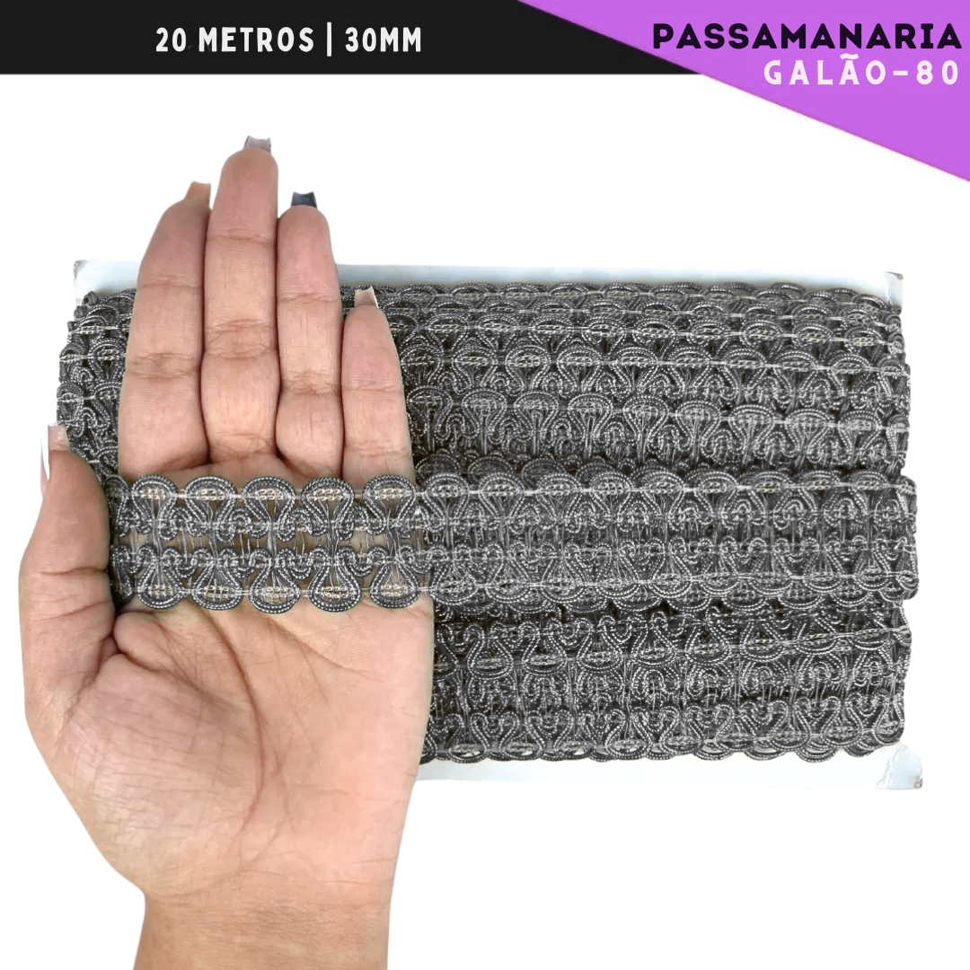Fita Galão Passamanaria - 30mm - Ref:Galao-80 - Rolo C/20 Mts