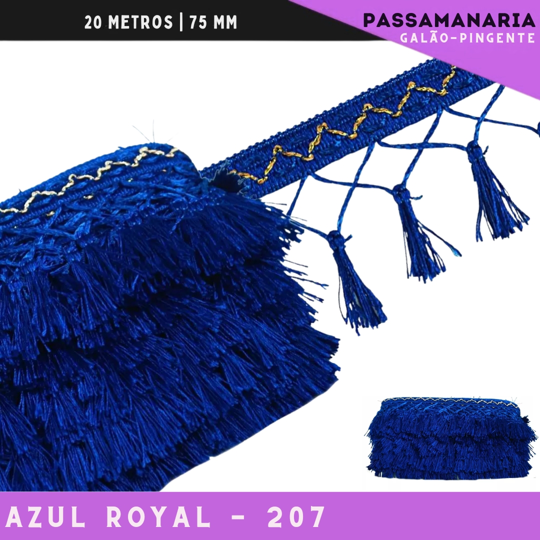 Fita Galao Pingente De Seda Tassel - 7,5 Cm - Passamanaria Franja - Rolo C/ 20 Mts Cor:Azul-Royal-207
