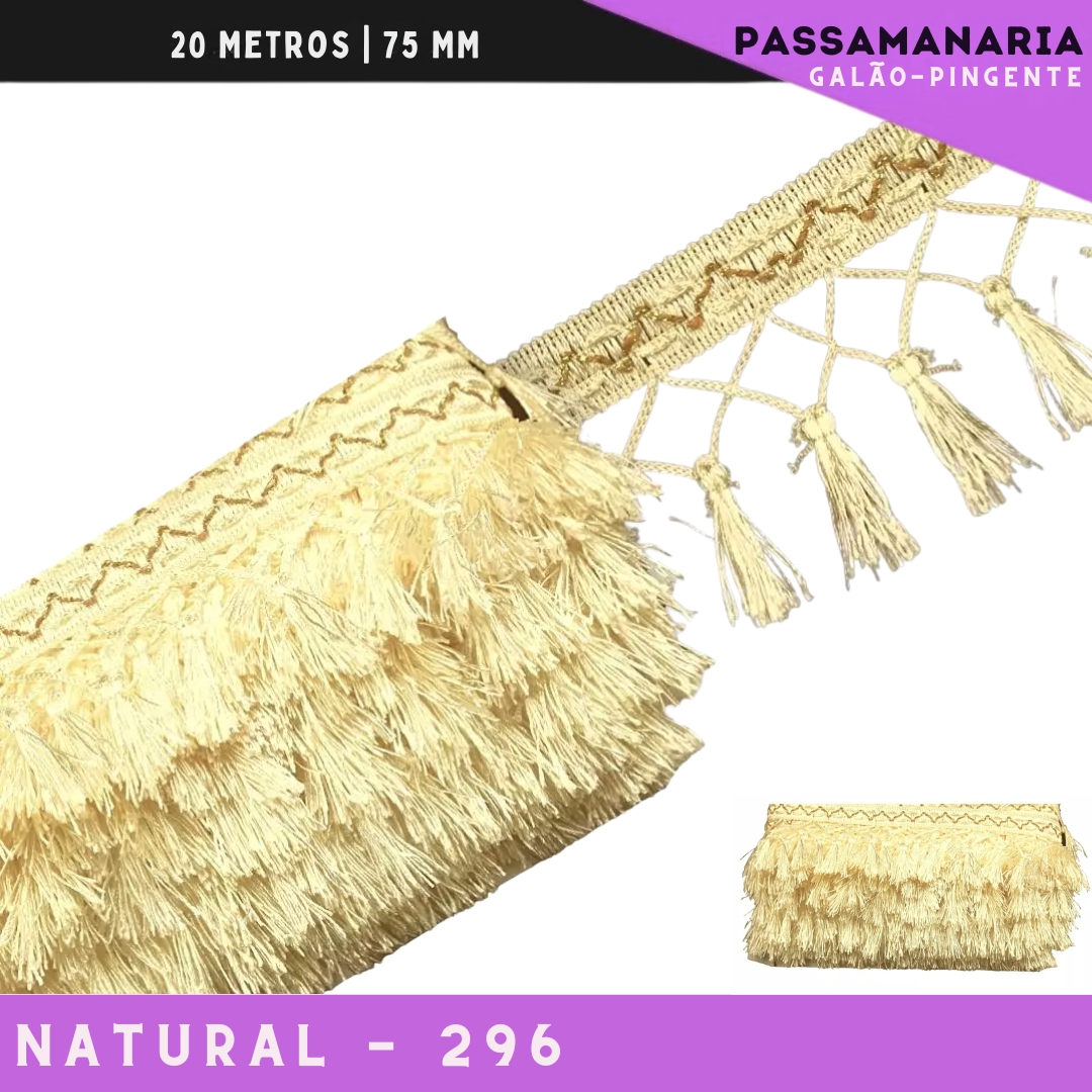 Fita Galao Pingente De Seda Tassel - 7,5 Cm - Passamanaria Franja - Rolo C/ 20 Mts Cor:Natural-296