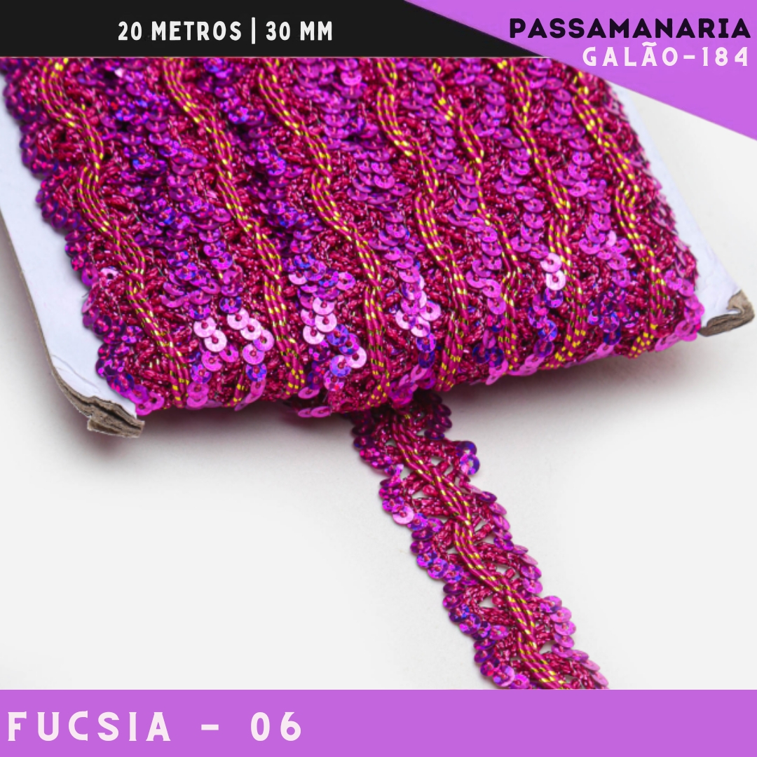 Fita Galão Passamanaria Ref:Galao-184 -24mm - Rolo C/20 Mts Cor:Fucsia-06