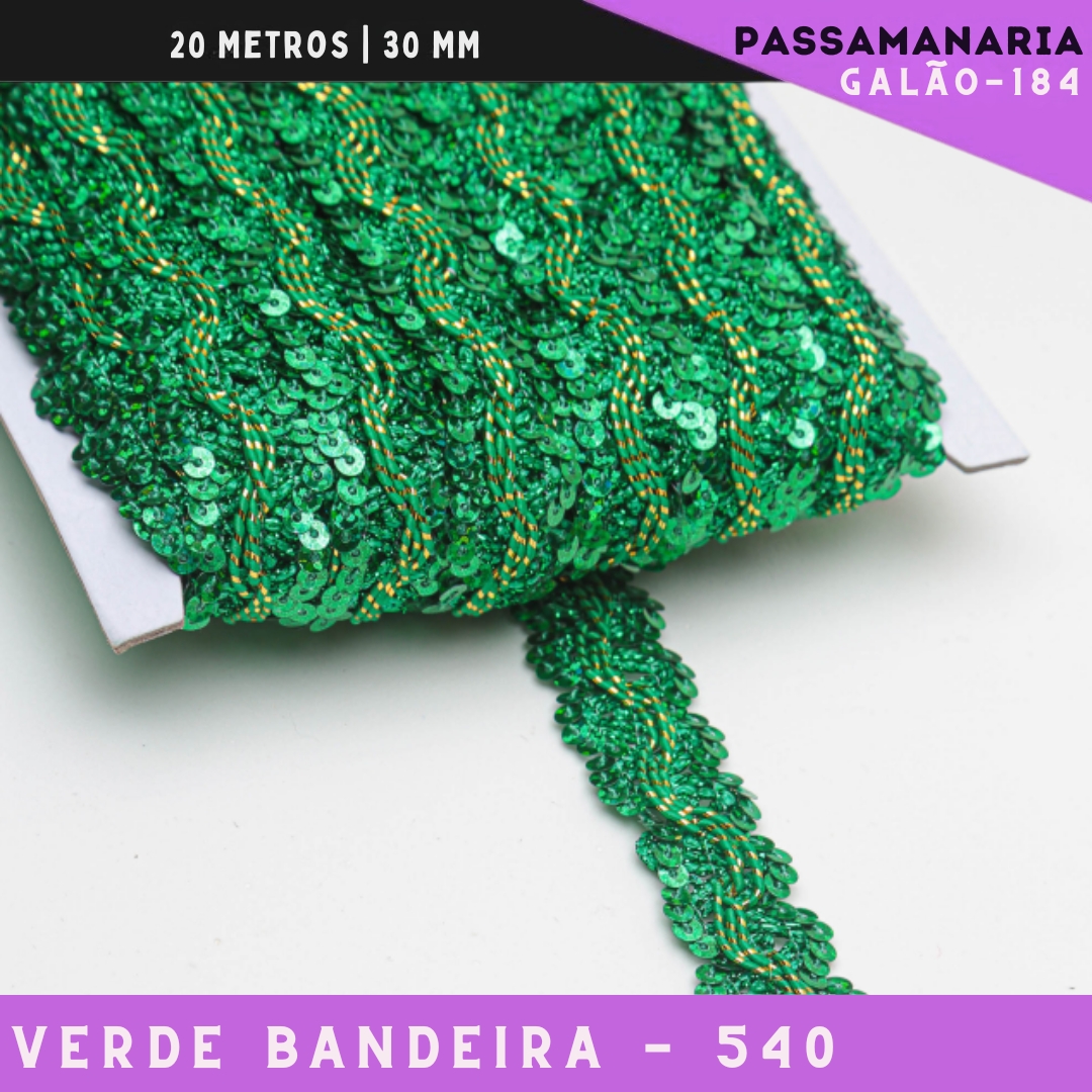 Fita Galão Passamanaria Ref:Galao-184 -24mm - Rolo C/20 Mts Cor:Verde-Bandeira-540