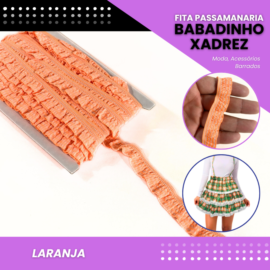 Fita Passamanaria Babadinho Xadrez Elástica - 18mm - Rolo C/13.7 Mts COR:LARANJA
