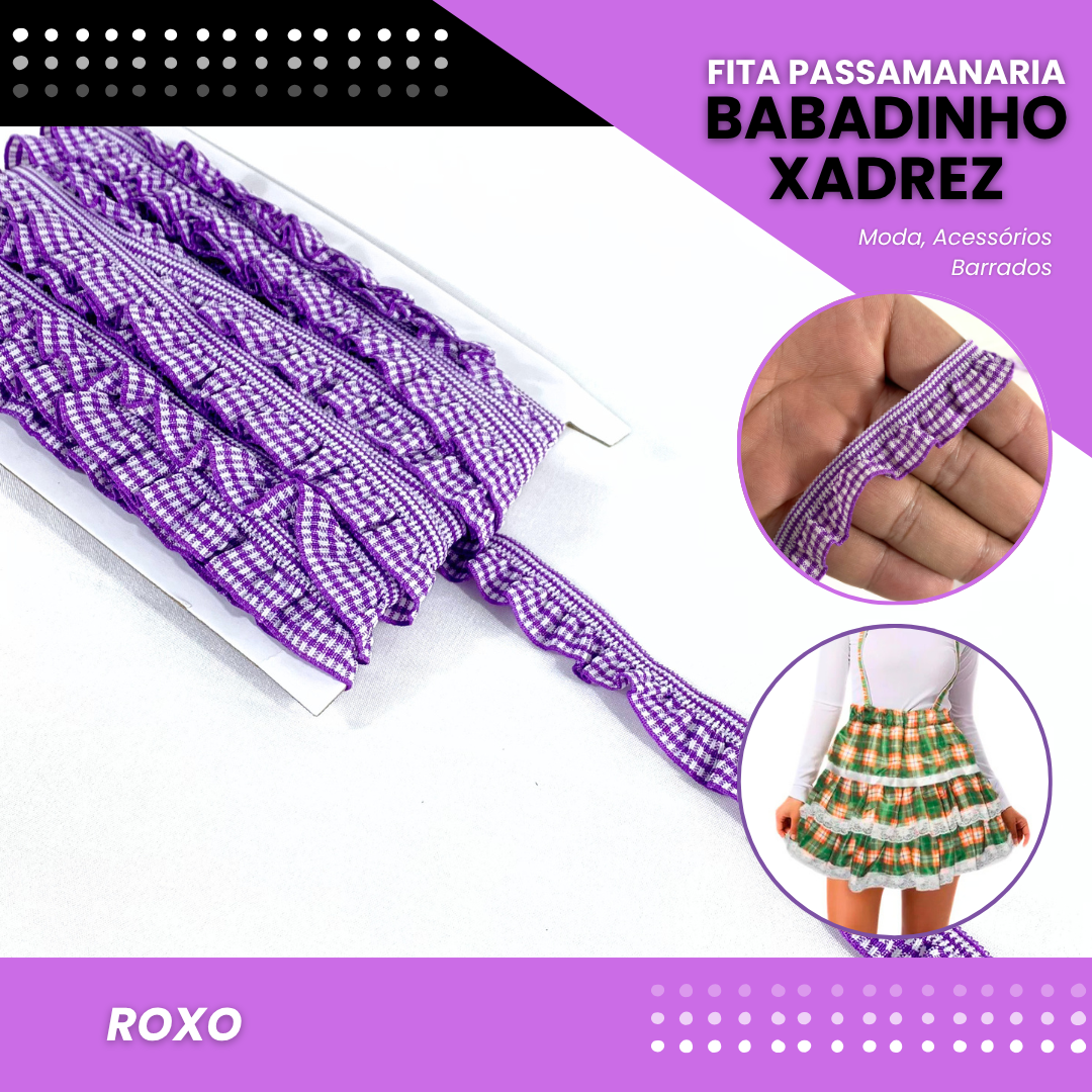 Fita Passamanaria Babadinho Xadrez Elástica - 18mm - Rolo C/13.7 Mts COR:ROXO