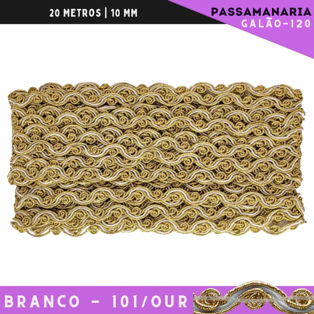 Fita Passamanaria Bicolor Galao-120 - Tam: 10mm - Rolo C/20 Mts Cor:Branco-101