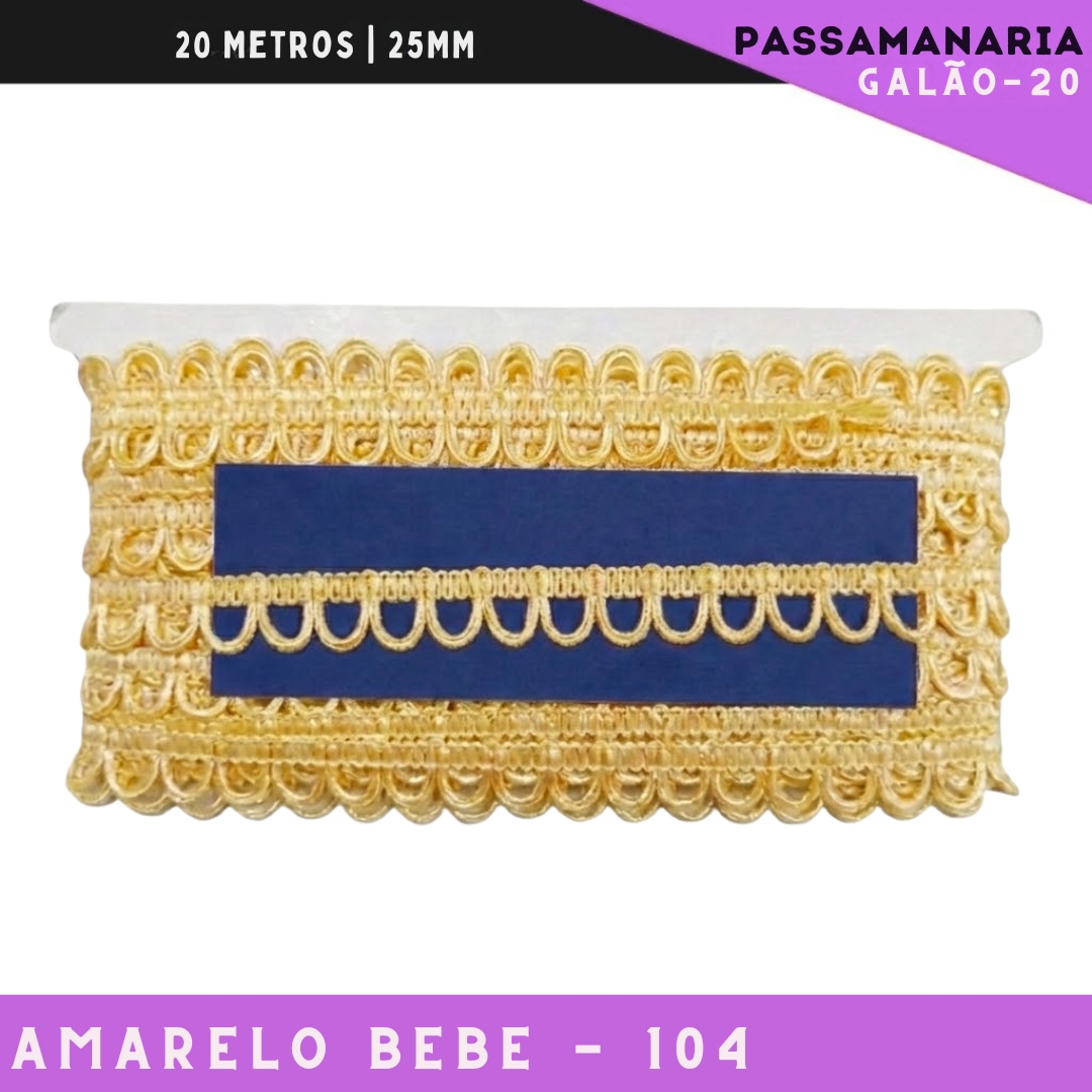 Fita Passamanaria Caseado Galao-20 - Tam: 15mm - Rolo C/20 Mts Cor:Amarelo-Bebe-104
