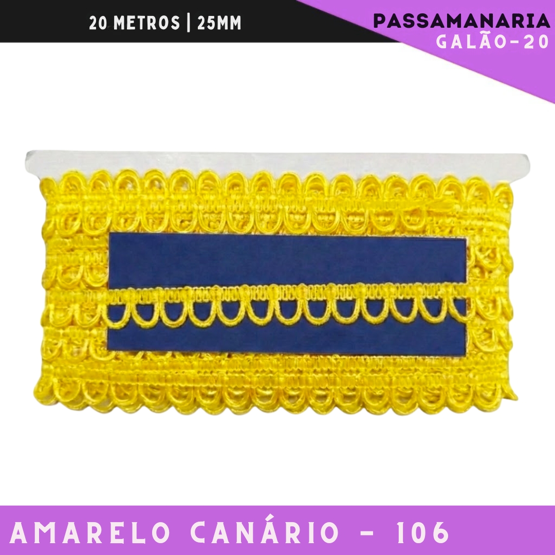 Fita Passamanaria Caseado Galao-20 - Tam: 15mm - Rolo C/20 Mts Cor:Amarelo-Canario-106