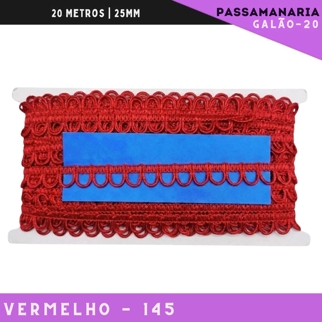 Fita Passamanaria Caseado Galao-20 - Tam: 15mm - Rolo C/20 Mts Cor:Vermelho-145