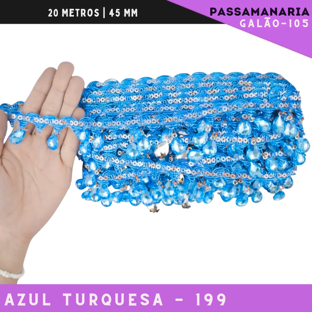 Fita Passamanaria Galao-107 Pedrarias - Tam: 35mm - Rolo C/20 Mts Cor:Azul-Turquesa-199