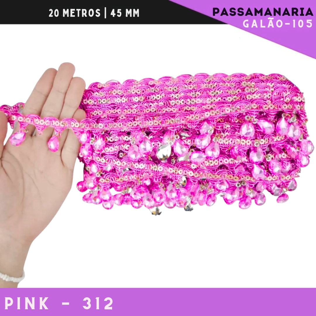 Fita Passamanaria Galao-107 Pedrarias - Tam: 35mm - Rolo C/20 Mts Cor:Pink-312
