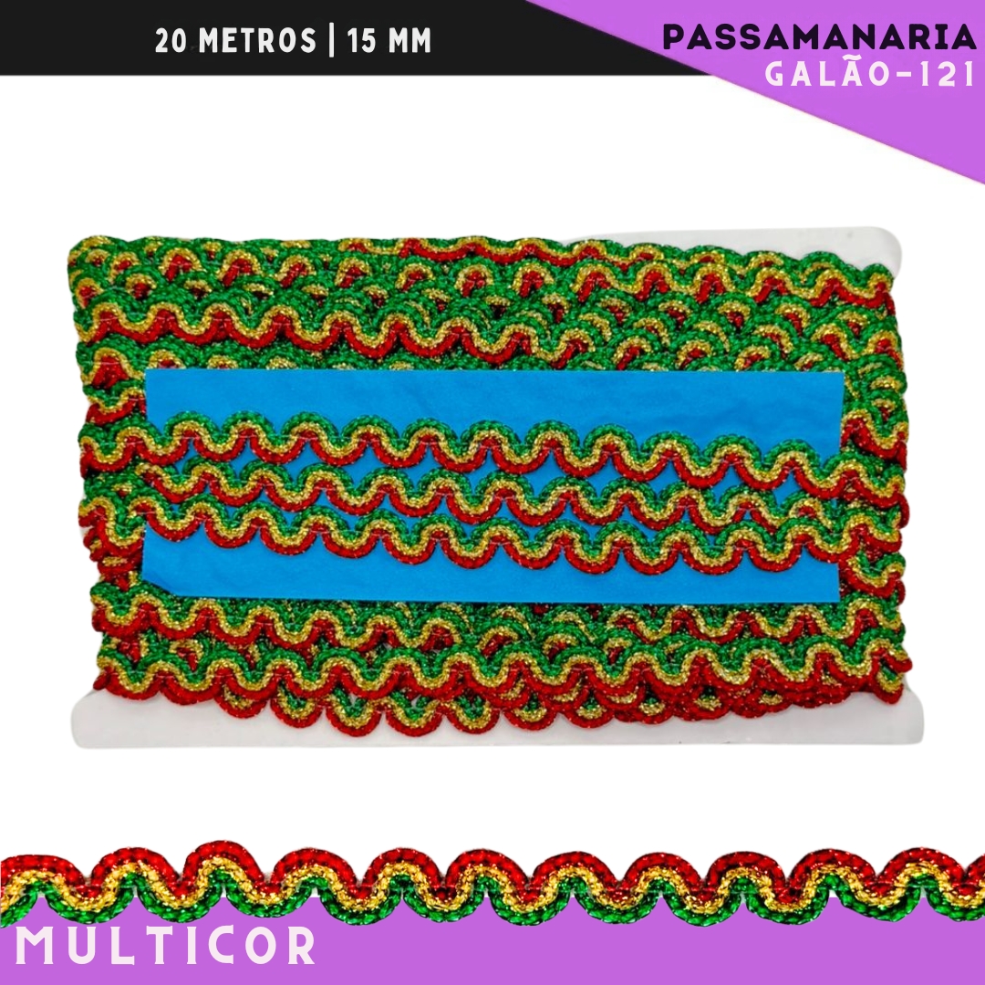 Fita Passamanaria Galao-121 Natalino - Tam: 15mm - Rolo C/20 Mts Cor:Multicor