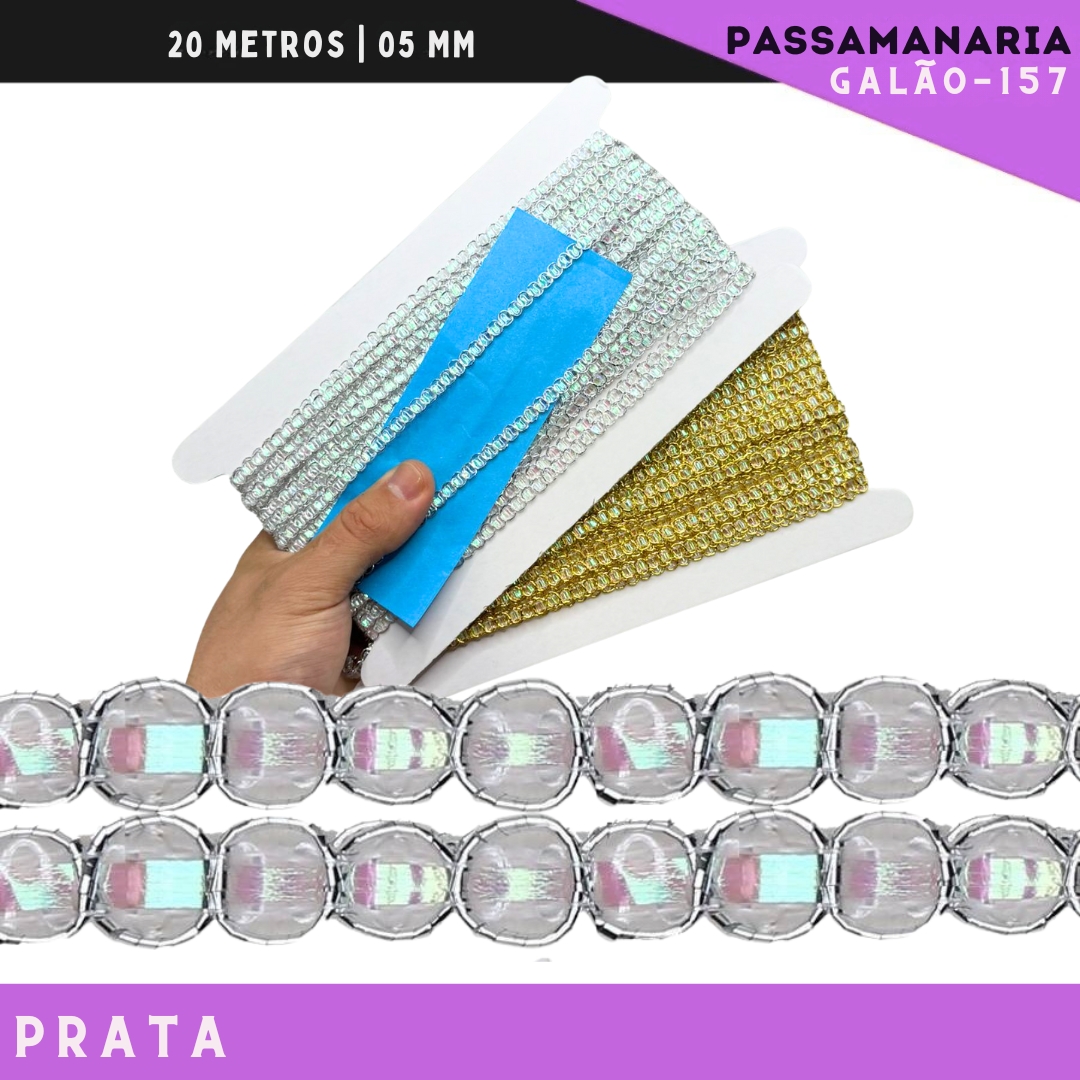 Fita Passamanaria Galao-157 Irisado - Tam: 0.5 Mm - Rolo C/20 Mts Cor:Prata