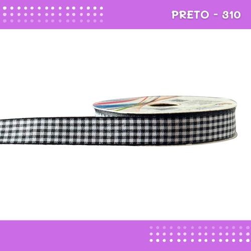 Fita Xadrez N°3 - 15mm - Rolo c/10 Mts Laços Junina Natalina COR:PRETO-310