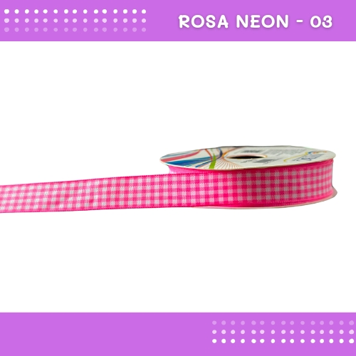 Fita Xadrez N°3 - 15mm - Rolo c/10 Mts Laços Junina Natalina COR:ROSA-NEON-03